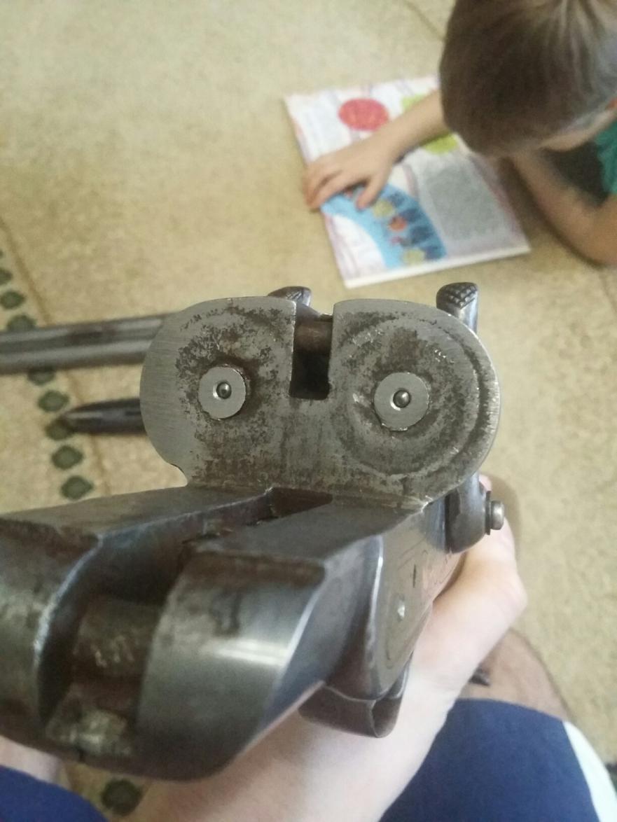 2) Бельгийка 1924 г.в. "Берртран и сыновья" 12 калибр, стволы домаск 715 мм. Ружье на 3 с минусом, но бой на дымаре вполне нормальный. Выточил новые бойки и пришлось делать. что-то подоби бранд-трубок, чтобы исправить прожженные отверстия бойков. Кому нужна рабочая классика, которую уже к сожалению не жалко -самое то