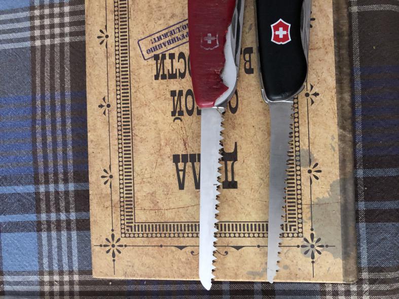 Купил 9 мая 2007 года в тот день, что познакомился со своей женой. Так что он для меня дорог и памятен, со мной все эти годы каждый день. Сначала думал, что пила лишняя, но оказалась очень нужна. Может и в Форестере клинок посередине, и отвёртки мощнее, и пила, вроде, лучше, этот нож уже часть моей жизни и всем нравится. Алюминиевый пакет начал гулять, кернил клёпки, но результата не достиг, клинок и отвёртка немного люфтят поперечно. В ремонт бы отдать, но по гарантии пришлют новый, а он не нужен. Будет жить-служить как и прежде. |