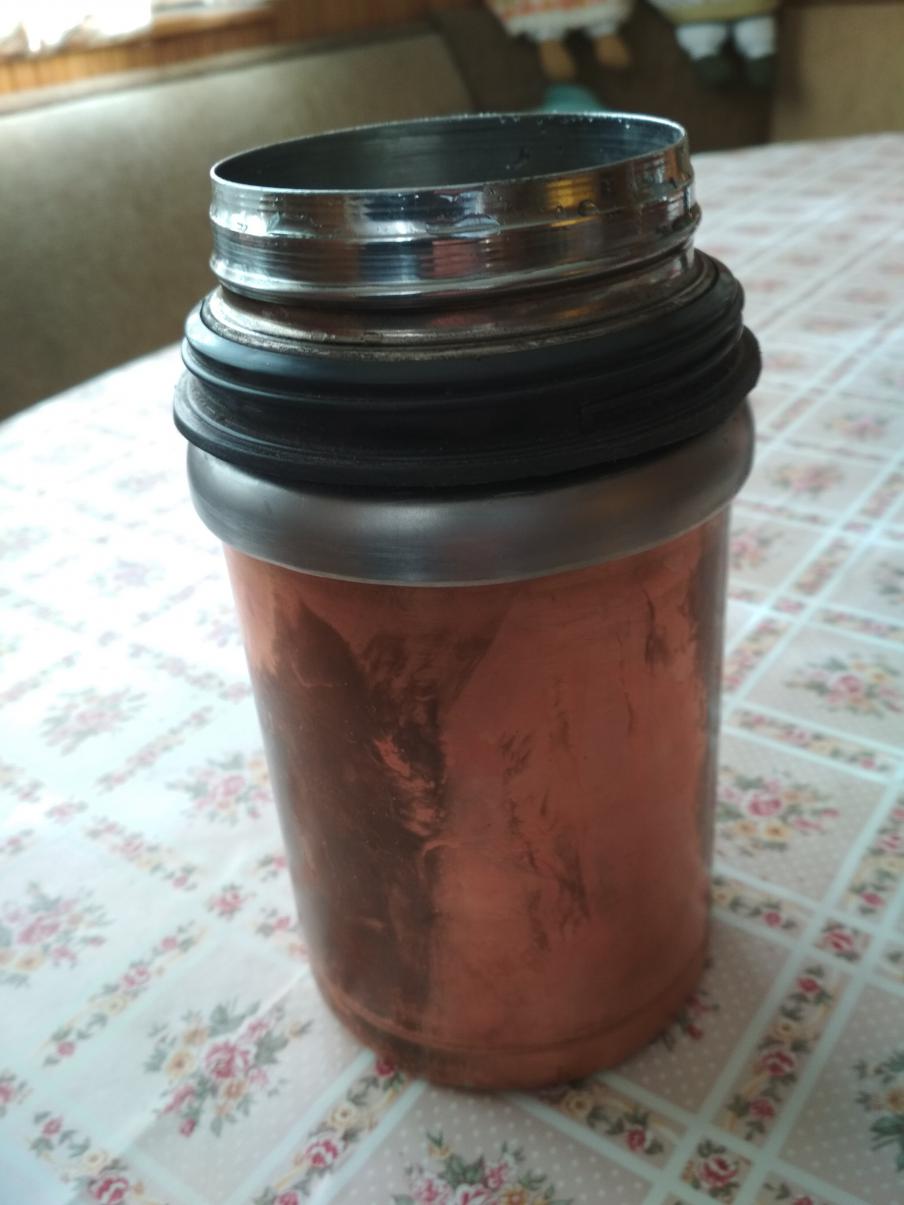Да, это ессно был термос. Подвох разве что в том, что температуру он не держит. То есть уже и не термос. После его незапланированной разгерметизации я срезал верхнюю колбу. Она тоже пригодна на поделки. А внутренняя колба меня выручает в холодную погоду. Это грелка. Заливаю в нее кипяток, засовываю скажем в утепленный чулок от сапога или ичига и беру с собой в спальник. Лучше всего размещать грелку в ногах. Между икр или повыше колен. Кому что важнее погреть. Среди ночи уже слегка остывшую грелку вытаскиваю из утеплителя и продолжаю греться уже через металл. Сегодня в 7 утра вытащил грелку и попил достаточно горячей водички перед тем как встать. Уже не первый сезон эта грелка делает холодную ночевку приятнее. При желании в ней же можно и воду вскипятить для утреннего кофе.