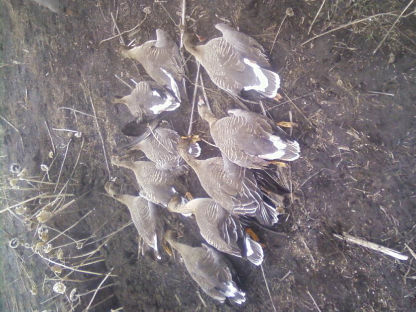 Решил и я написать отчет о проведенных охотах весеннего сезона. Открытие (9-10 апреля) ни одного выстрела. За 2 дня наблюдал 3-4 небольших стаи гусей. 11 апреля понедельник – первая результативный день 3 гуся (2 гуменика, 1 белолобый, фото нет). 12 апреля - катание по полям, поиск присадок гуся. 13 апреля – второй результативный день 2 гуся (оба белолобые, фото прилагается). В период с 13 по 19 выездов на охоту не было по производственным причинам (по моему мнению самый результативный период для охоты на гуся).19 апреля вечер - разведка поиск присадок гуся. 20 апреля – самый результативный день 10 гусей ( 2 гуменика, 8 белолобых, фото прилагается). 23 закрытие ни одного выстрела за утро 4 стаи на кислороде (очень много утки, но на утку весной не охочусь). Итого за весну 15 гусей. Охотой доволен. Все охоты проводились в Самарской области по всем правилам гусиной охоты (профиля, манок, маскировка, качественные боеприпасы (дробь 0 или 1), терпение и упорство).