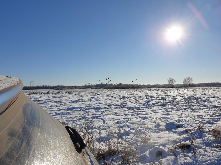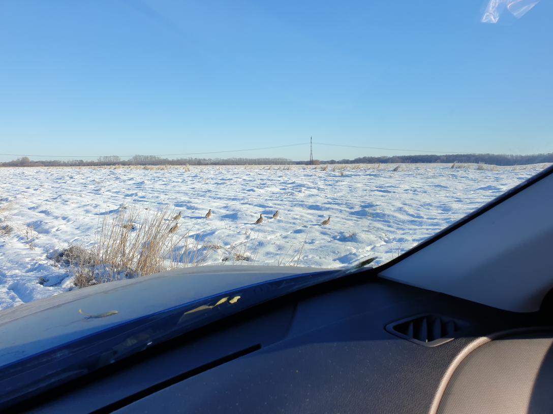 Расстроился, что не удалось в выходные поехать на охоту и закрыться. По делам сегодня оказался в деревне и понял, что охота в выходные все равно не удалась бы- морозы под 30, встал даже Сок, не говоря уже про озера и болота. Немного прогулялся , полюбовался стайкой куропаток, которые помахали мне до следующего сезона)