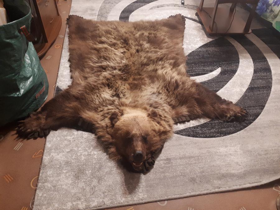 Продам готовую шкуру медведя,в натуральную величину.Самец трехлетка,отличная выделка,низ подшит тканью.8-982-266-13-сорок семь.Можно повесить на стену,можно в качестве ковра.
