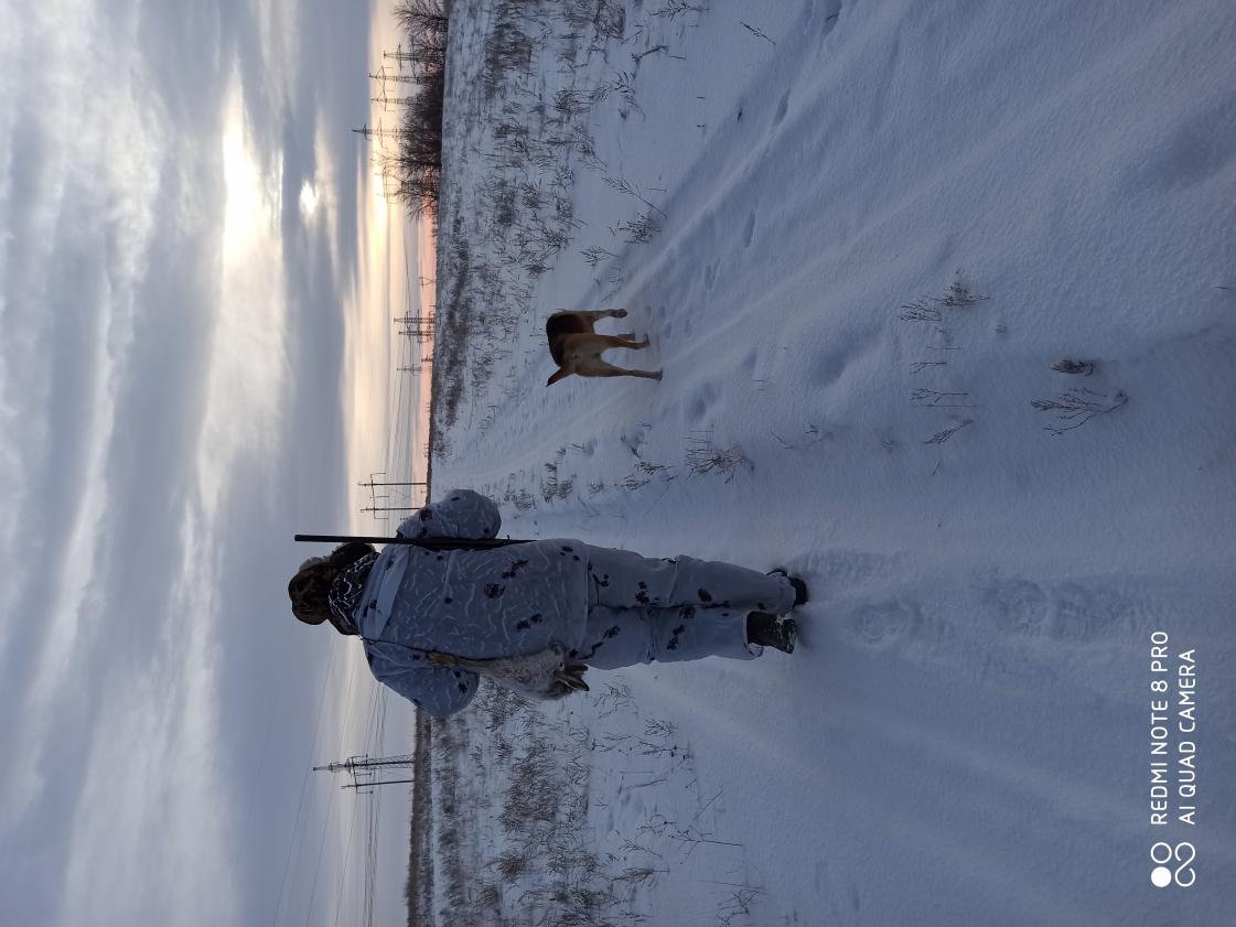 Вернусь к своему бедолаге)- напетлял он прилично, лег на ветер , мордой к следу, но он не рассчитывал что зайду с тыла, сделав дугу, в итоге выстрел в бурьяне, в угон, нулем( заранее перезарядил с " тройки")...