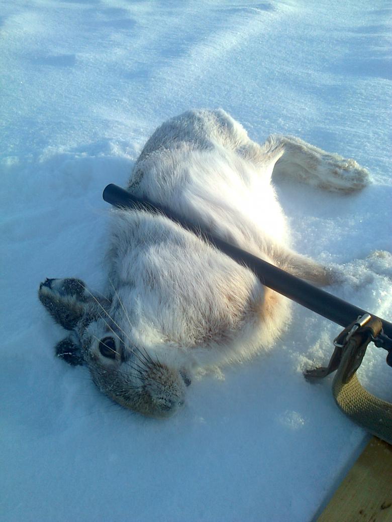 Вышел сегодня с собакой, в поле под кустом подняли зайца,загнали его в лесок,на втором круге я его и взял.не получается фото загрузить((
