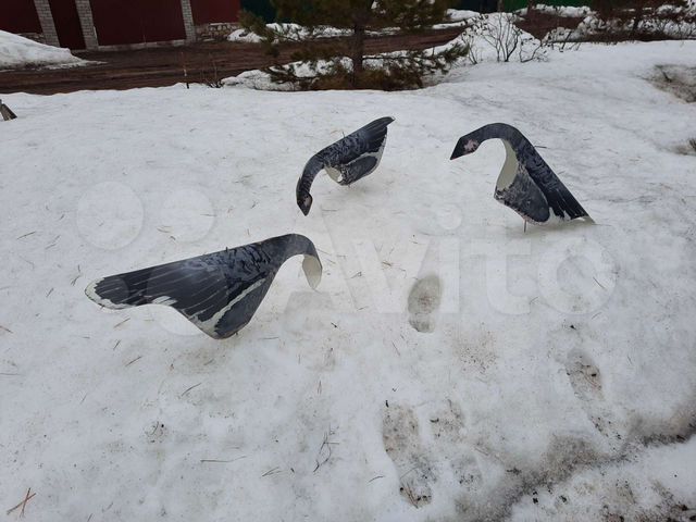 Самодельные чучела гусей. Пластик. Быстро устанавливаются, легко и компактно собираются. Возможность регулировки наклона от "кормящегося" до " сторожевого". Цена одного 350р. Всего 14шт. Продаю комплектом. Здесь бываю редко. Звонтте пишите в927205 26 тридцать.