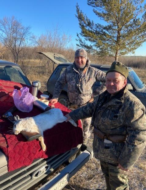 Белым покрывалом было всё укрыто. Настроение поднялось. Но вскоре упало. Следов то нет, кроме следов неправильных и больших "зайсов". Их мы видели 8 штук. Вдоль грунтовой дороге замечаем еле заметный след косого, которого разбудили, но ушел он незаметно. И тут начались погони. Первый всё-таки уходит. Второй тоже. А пока шли с выжлецом по следу, поднялся третий. Мазанул☹️. Вернулись за вторым. Нашли его скидку, начали тропить. Подняли. Минут через 30 гона, заяц вернулся на свой след, где и был добыт охотником. Трудовой трофей, тем он и ценнее.