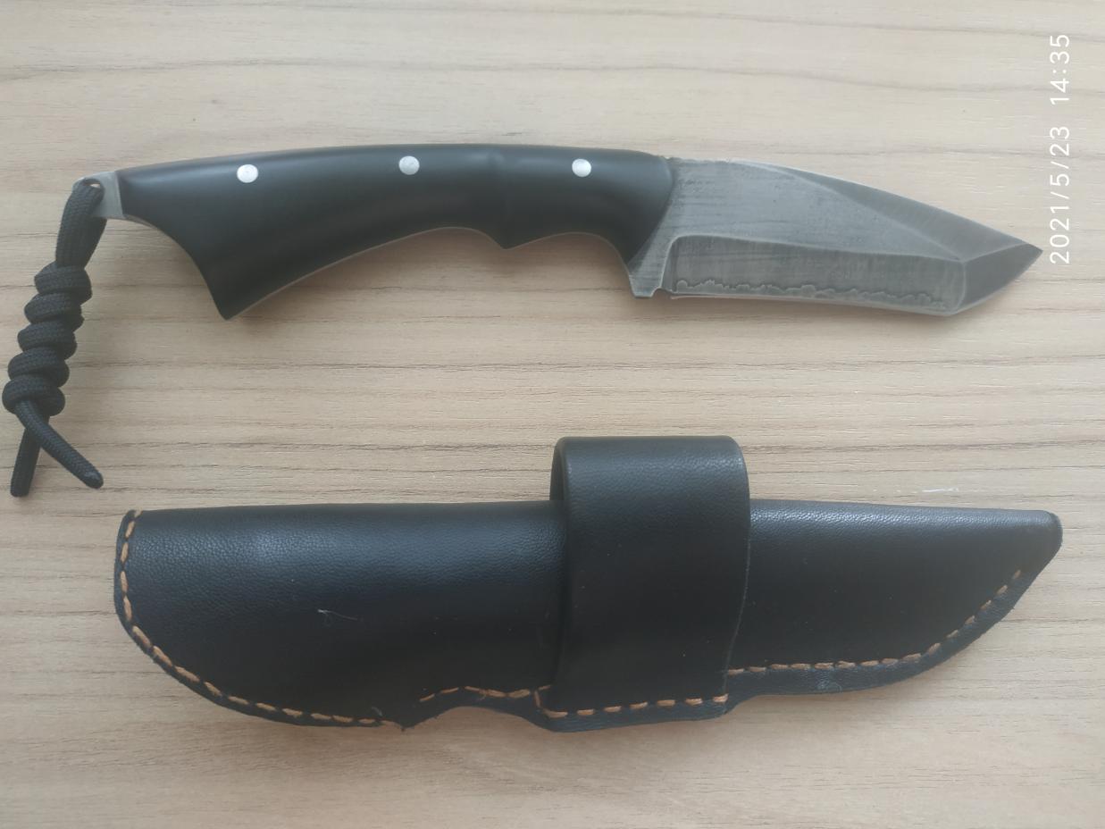 Продан. Нож изготовлен на заказ в единственном экземпляре.Длина лезвия 95 мм, ручка 110 мм, обух 2,6 мм.Сталь 65Г , закалка+отпуск, воронение,ручка накладная эбонит. Чехол натуральная кожа.Нож новый.Без торга. Цена 3000р т.89023750091