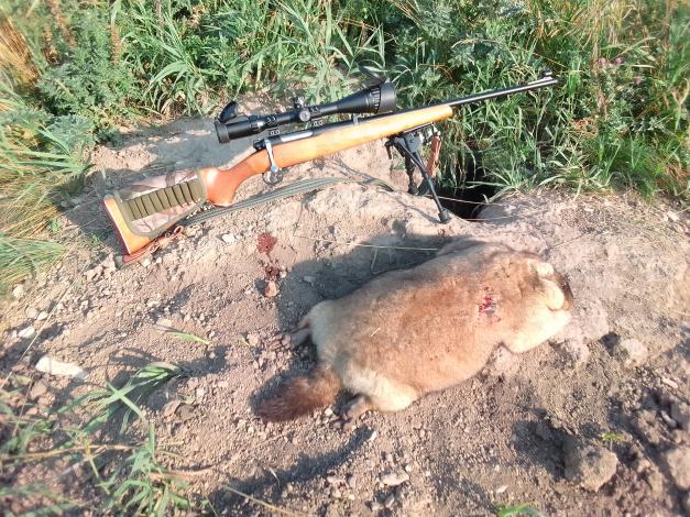 Выехал с вечера, в 12 уже был на месте. С фонарём осмотрел сурчины- свежие отвалы, тропки в траве-охоте быть! Летняя ночь коротка, пару часов сна и ночь отступает, сменяясь предрассветными сумерками. Бутерброды,чай и выдвигаюсь. Ещё раз осматриваюсь на месте- сурчины расположены полумесяцем, выбираю позицию так, чтобы доставать все. Тут как раз несколько подходящих кустов, солнце будет вставать за плечом. Аккуратно подрезаю, несколько веточек что-бы установить трипод, узкая полоса для наблюдения и стрельбы, остальное- моя маскировка. Ждать пришлось пару часов- слоистые облака лежащие около самого горизонта наконец-то отпустили солнце из своих объятий и оно осветило землю. Штуцер лежит на триподе нацелен на центр полумесяца- там самая крупная сурчина с большим отвалом камня, но столбик замечаю периферийным зрением на самом краю полумесяца, там где он вплотную подходит к полю. Пока вожусь триподом и стулом, разворачиваюсь с сторону сурка там-же появляется второй и третий. Успокоились, начали питаться. Дистанция 120, выбираю самого упитанного, дожидаюсь пока он встанет осмотреться. Выстрел разрывает тишину, сурки скрываются за травой. Уже на бегу вижу рыжий клочок-есть! 30 метров до сурчины, как-то странно лежит, то-ли лежит то-ли полусидит. Уже начинаю вскидывать но нет, не надо разбивать тушку-успею! Не успел. Даже не успел заметить когда он юркнул в нору. Есть кровь, булькающий звук из норы, похоже лёгкие. Подгоняю машину, в багажнике 2-х метровая пружина. Попытки зацепить зверя пружиной не приносят успеха. Жаль напрасных мучений зверя, потерянного трофея, но значит не мой. Нужно учиться стрелять. Переехал на другое место. Сурков заметил в бинокль издалека. Пробую с подхода. Прячась за извилинами дороги и буйным разнотравьем подхожу метров на 100. Так, трипод на изготовку- выстрел. Поторопился, не успокоил дыхание. Осмотр сурчины подтверждает промах. Здесь нужно ждать. Вот подходящая полоса густой обронки, куст татарника, сурчину будет видно хорошо. Ноги трипода на минимум, прилаживаю штуцер посмотреть подходящая-ли высота. Опа! А вот и он красавчик, то-ли совсем наглый, то-ли вовремя я присел за куст. Ты мой и точка! Вдох-выдох, вдох-выдох, крест на то место, где сходятся ключицы. В уже поднимающемся от отдачи прицеле вижу попадание-сурок опрокидывается навзничь. Рву когти к норе-есть, вот он красавчик. На сегодня хватит, делаю пару фотографий с трофеем, разделываю, жир под сопло кондиционера и возвращаюсь в город.