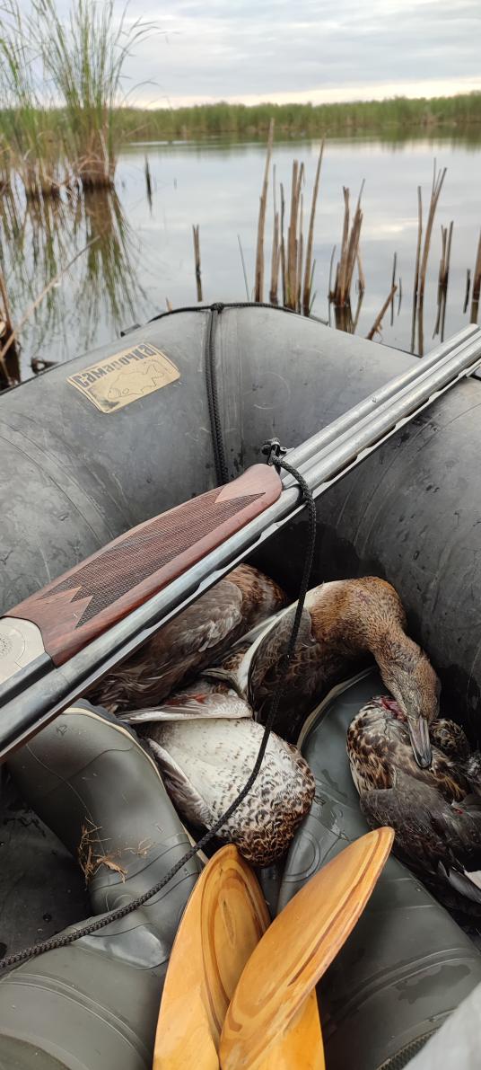 Снимаемся – и только опускаю телефон как из-за деревьев за нашими спинами на высоте метров 30 вылетает четверка уток, понимаю, что выстрелить эффективно не успею, хватаю манок и начинаю покрякивать, сын тоже схватил второй и начал помогать как мог. Дистанция продолжала увеличиваться, утки уходили в вдоль русла реки, но тут смотрю сначала одна потом вторая и третья с четвертой пошли на разворот и снижение, далеко еще от нас но шли к нам, я на радостях стал интенсивнее изображать кормежку и видимо «накрякал» что-то обидное – утки не долетев метров 100 развернулись и скрылись за деревьями.. Отдыхая от непривычного кряканья уже решил что вот теперь все – апогей прошел можно и домой, стал было разряжать ружье, как со стороны скрывшихся уток раздалось еле различимое Кря.. Беру манок и в слабой надежде даю ответ и мне ответили далее в течение получаса пытался максимально изобразить все что слышал в речитативе утки включая подобие посадки услышанной в ютубе – в итоге мой собеседник затих, затих и сын наблюдая наш диалог со стороны нацепив балаклаву – наблюдавший в бинокль пространство в сторону уток – слышу от него еле слышно – что-то летит над камышом, что летит я уже смотреть не стал – сразу вскинул ружье на изготовку, зажав губами манок издал еще пару кря, как из-за верхушек камыша вылетело серое пятно, сделав свечку в пару метров вверх, словно пикирующий истребитель развернулось и пошло в сторону нашей засидки к чучелам – в этот момент уже интуитивно вскинулся – утка вышла в развороте точно на меня – выстрел… кувырок через крыло и птица падает на воду в паре метров от нас – это кряква. Вижу, что еще жива и добиваю чтоб не мучалась. Моя первая, интересные мысли в голове начали крутиться - как тут сын на радостях – папа давай еще до вечера сидеть будем!! Сбил философский настрой, блин. Ну давай, будем сидеть. Но планы сбила жена – женщинам надоели магазины – надо возвращаться. Возвращались как то на позитиве – только теперь в философию полез сын – с извечной темой курица или яйцо и что значить жизнь. Последний раз редактировалось Илья Александрович; 02.09.2023 в 23:16. |