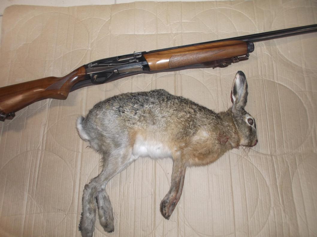 25.10 не смог проехать в намеченное место из-за грязи, поэтому решил топать от асфальта в другое. Это небольшая ложбина, заросшая шелковистой травой с холмом посередине и рядом "зеленка". Пошел по кругу вдоль границы участка "челноком". Головой крутил влево-вправо, но подьем зайца не увидел. Он мелькнул на вершине холма, идущего по середине всей ложбины и скрылся. Выбежал на холм, прошел обратно к месту, где заходил в ложбину, но зайца не обнаружил. Пошел обратно, челноча, но теперь с другой стороны холма. Почти дошел до конца ложбины, но что-то потянуло меня на сам холм, заросший высоким ковылем. Опять пошел обратно по холму, осматривая местность ниже справа. Прошел метров 20 и тут услышал звук подьема зайца. Встал метрах в 10, но я его не видел, пока он не свернул влево и не понесся вниз в сторону зеленки. Я его взял на мушку, как только он показался из травы. Боковой выстрел метрах в 40. Патрон "3" БК, попадание первым. Вес 4700.