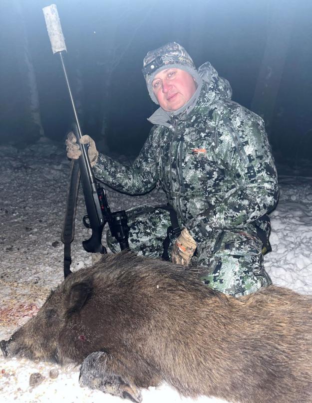 Выбрал первого сеголетка, услышал более тяжелый вздох свиньи, второпях нажал на спусковой крючок.