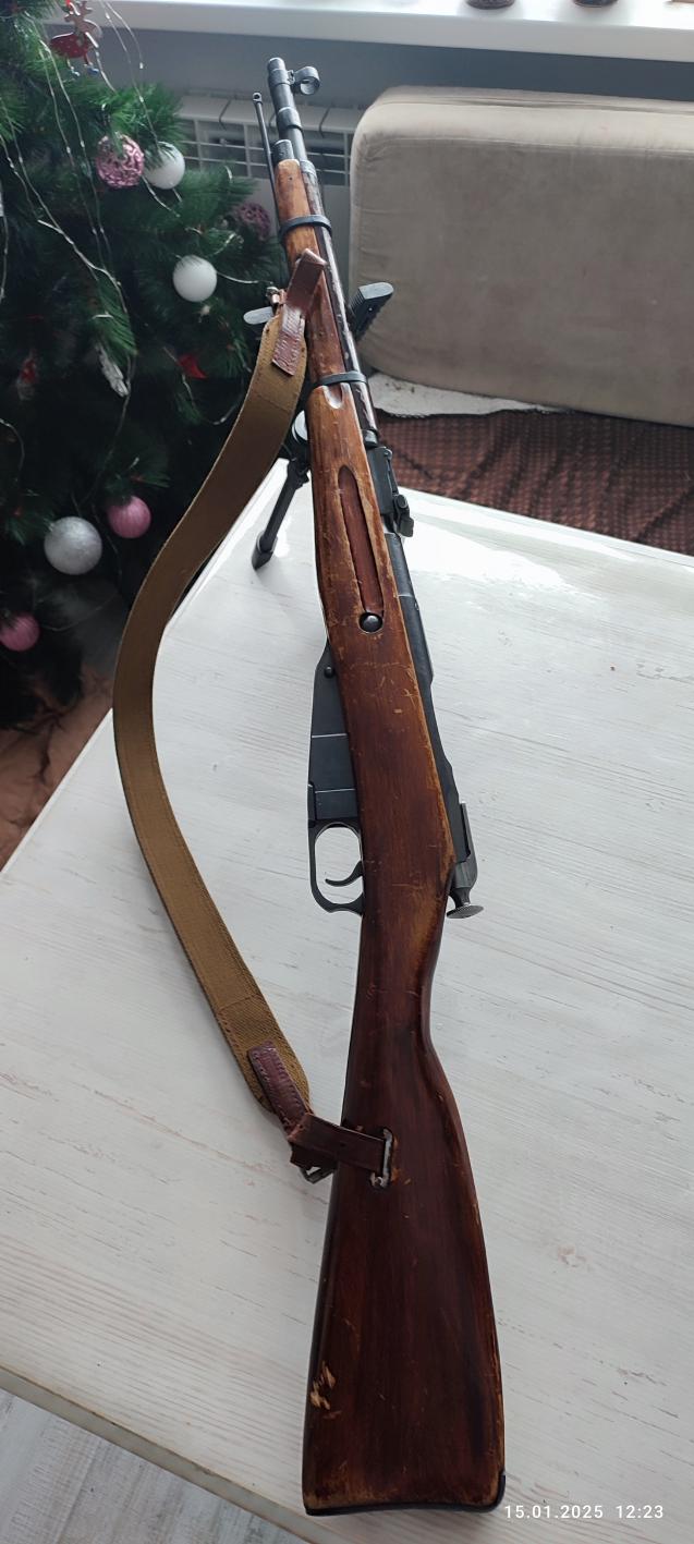 Вашему вниманию представлен бодрый старичок системы Мосина. Карабин на одних номерах,на удивление лёгкий и разворотистый апарат с хорошим боем. Простой и надёжный как стреляющее копьё, жаль прилив под штык спилен в штыковую увы не пойдёшь.