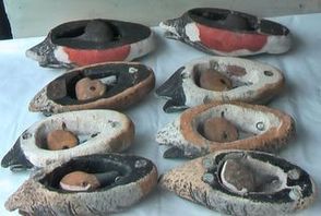 Самодельные чучела из пеноплэкса (корпуса) и твердый пенопласт (головы).Подошвы утяжелены от переворота в сильный ветер. Акриловая краска без бликов. Пользуюсь подобными несколько лет, доволен. Минус один - нельзя забрасывать "по - канадски". Избавляюсь от излишков по цене 150руб. за любое или 2300руб. за все. Сызрань. тел. 8 927 779 5086