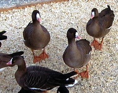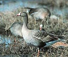 Пискулька Пискулька - Anser erythropus см. также 6.1.2. Род Гуси — Anser Пискулька [73] - Anser erythropus Очень похожа на белолобого гуся, но еще мельче, темнее, клюв короткий; у взрослых белое пятно на лбу заходит на темя, а вокруг глаз узкое желтое кольцо. В полете кажется более острокрылой. Гнездится на озерах или среди камней и скал в тундре и лесотундре, чаще у края леса, на пролете встречается по всей территории. Голос очень высокий и визгливый. В последние годы стала редкой и занесена в Красную книгу России. К сожалению, лишь немногие охотники способны отличить пискульку от белолобого гуся, и ее продолжают отстреливать во время пролета. |