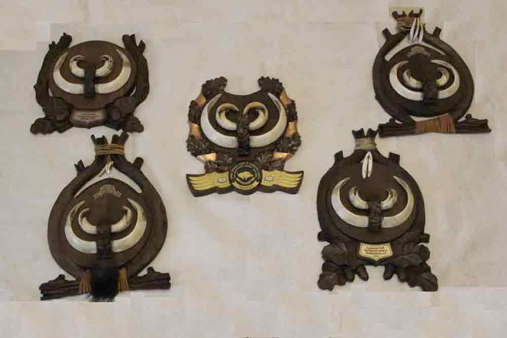 __ ДА..и клыки и медальон. Эти клыки были добыты еще в декабре 2011г. Охотник привез голову, я через 3 дня я ему позвонил, сказал размер, потом они обезжиривались, покрывались, заливались и готовые лежали, а после нового года отец говорит____ Клыки то огромные, ведь будут где то в комнате висеть и никто кроме друзей и не увидит, давай хозяина отметим как то, ну а если отмечать, то самые большие. Несколько клыков не хватило буквально 7 мм. Мы поздно взялись, но на следующий сезон обьявим в начале сезона и по окончании сразу обьявим самые большие по Самарской обл. Ну и приз от нас__оформление (наверное такое). Медальон необычный, запоминающийся.