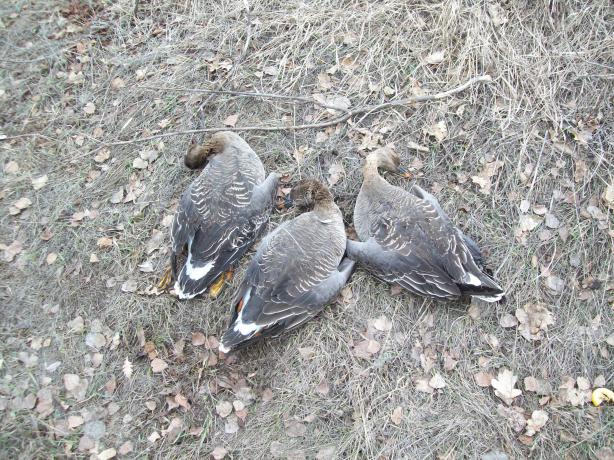 Сегодня вернулся из Борльшеглушицкого р-на . Приехали в пятницу, на старом месте в этом году кукурузу не сеяли - пришлось весь день посвятить поиску нового места. Перепаханной кукурузы не нашли , сели на скошенной. В итоге профиля было видно плохо и гусь хоть и летал, но на них не шел. Поле было огромное , поэтому сидели на удачу - две стаи голов по тридцать садились кормиться но далеко от нас. Один раз всетаки хорошо налетели , но сплоховали мы.
