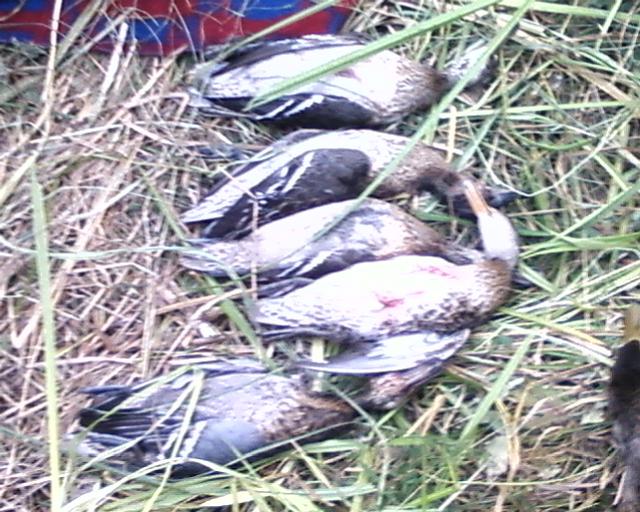 Выехали на открытие вечером в пятницу 17-го. Приехав на место разбили лагерь. Дальше ожидание утренней зори, байки, рассказы о великолепной работе собак и т.д. и т.п.....короче бла бла бла.... Утро, подъем в 3:30. Слышны звуки выстрелов! Куда стреляют не понятно, наверно по бутылкам, т.к. нифига ниче не видно еще...Выдвигаемся, до места засидки, расстояние примерно 1 км, по пути налетает стайка голов 15-20 - 1 утя бито чисто. Собакен четко вытащил ее из камыша (это радует, т.к. молодой песка еще, а тут такие результаты, так что натаска была ему в ум). На месте налетела еще стайка голов 15 крякашей - выстрел, одна падает, вторым выстрелом вдогонку стае, но мимо - собакен в камыш за битой птицей полез, через минуту вытаскивает от туда матерую крякуху! и снова в камыш, гляжу он еще одну от туда тащит!!! Моему удивлению не было предела, оказывается я двух снял из этой стайки и сам того не заметил, т.к. произвел выстрел в вдогонку стайке и вторую утку даже и не увидел как она падает...Во как бывает. Еще раз убеждаюсь, что без собаки на охоте нельзя!!! Итог за утрянку моих 4 крякаша, а в общем на 7 человек добыто 12 утков. Вечерка также прошла обалденно. ВСЕХ С ОТКРЫТИЕМ!!!!!!
