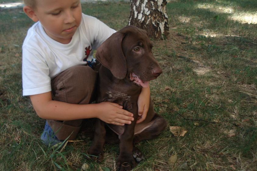Щенок активно воспитывается мамкой и хозяином. Приучен к ряду команд - ко мне, сидеть, НЕЛЬЗЯ