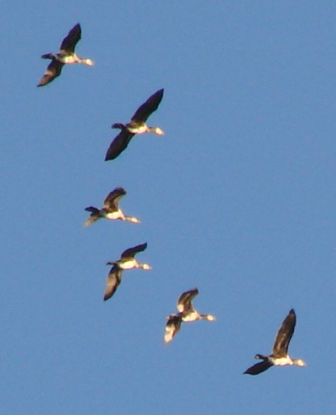 Сегодня после обеда рыбачил на Копылова. Между Телячкой и горой кружила стая голов 200-250. Пока фотик расчехлял, основной косяк ушел через гору в сторону Жигулевска. Небольшую стайку (25 голов) успел сфотать. ГусЬ????