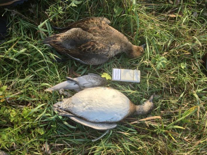 свиязь крупнее, белое пузо, клюв с синевой.