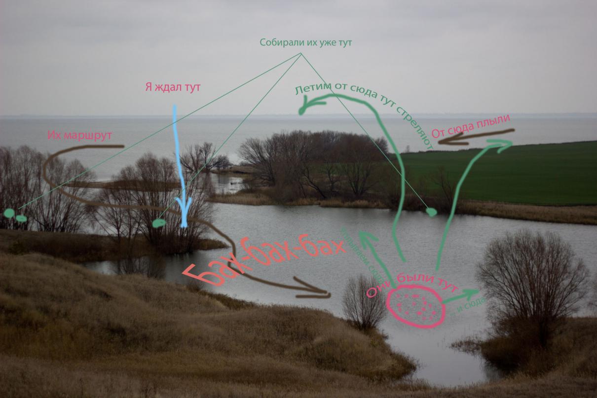 Шигонский район, река Чернавка. Два дня выслеживал. Поздно приезжал. Пока ходил к тем кто крякает, улетали те кто на воде. И все-таки я их нашел. Бил с берега, потом лодку два часа искали, т.к. своя прохудилась....