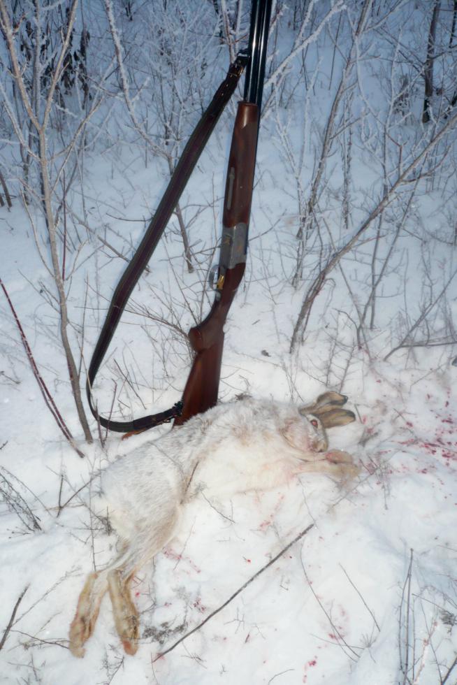 Вчера тоже 1:1, немного ожидания не оправдались, огромное наличие следов прям тропы и всего два подъема. Первого, после долгого лазания по траве и овражкам, собака выковарила в овраге. Тот все тропами гонялся ушел километра за три от подъема, обманул, скакнув на тропу, собаку и нас. Пересек озимые и ушел машинным следом. Решили пообедать дать успокоится косому. Перекусываем, мужики выпивают, смотрим косой прыгает там где перестали гонять, да так как будто лечь собирался видимо нас услышал и ушел посадкой. Мы давай собираться, пока след горячий собачку хотели поставить хлоп гончак чей то там появился потом охотник. Подъехали определили по следам куда наш заяц пошел, а тот косой которого видели от охотников поднялся. Через метров 500 подъем и выстрел подпустил близко метров 10. Второго уже часа в четыре подняли так и не взяли. Всех с полем и новым годом!