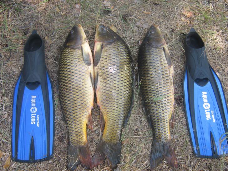 Дырку проколол!!! Ладно пошутил и хватит, поймано все на закидушку (место все равно не сдам), а костюм одевал, т.к. пришлось нырять, искать 70м плетенки успешно смотанной сазаном с катушки, но увы муть!