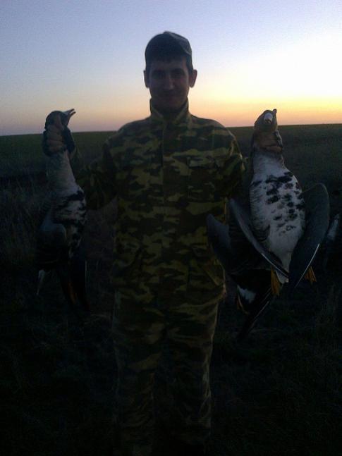Вчера и сегодня до обеда были в полях, гусик зашевелился. Мечется немного на разной высоте. С вечера нашли приличную стаю. Почти всю ночь закапывались и есть результат. Одна стайка на манок и профиля зашла без облета и села в профиля в 15 метрах, 4 выстрела и ни один гусь из этой стаи не пострадал. Но четырех приземлить все таки удалось, три белолоба и один серый. На фото только три, на четвертом телефон разрядился. В общей сложности за три часа было шесть налетов, если бы меньше кое чем щелкали было бы больше трофеев. Всем удачи на охоте!