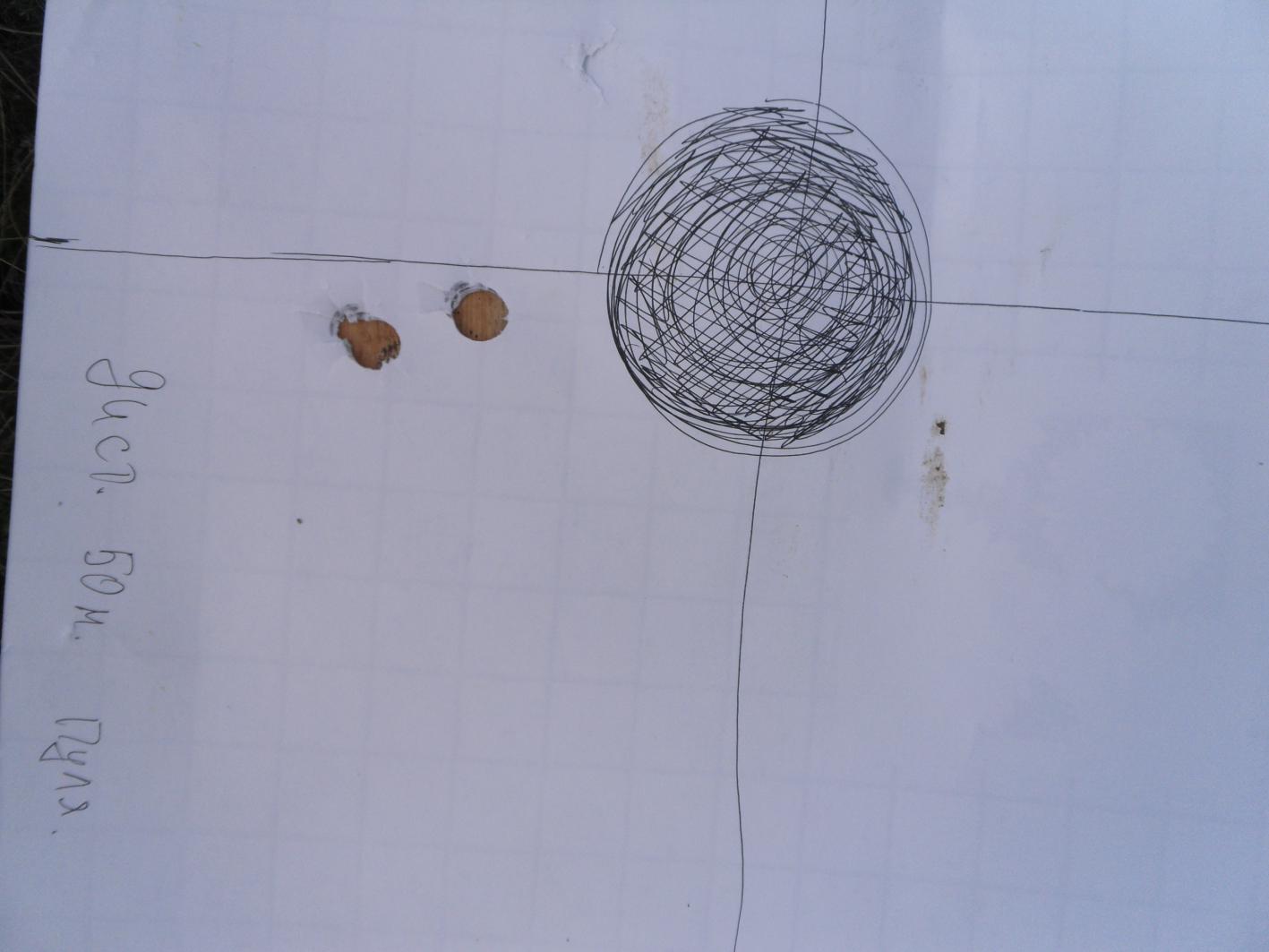 Стрелял пулями на 50м. ушли немного влево на 7.5см и на 5.5см но я не расстроен нисколько.