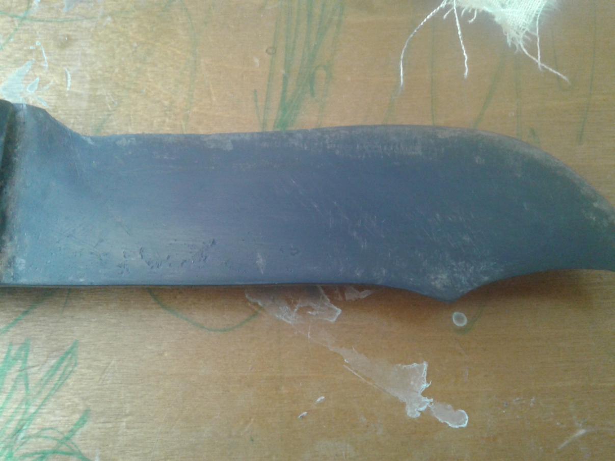 - покрыл нож между делом.нож из пилы. Пошол кисть мыть, мама им рыбу чистит.в крышке еще осталось немного. Взял его, чуть наждачкой почистил.не обезжиривал.