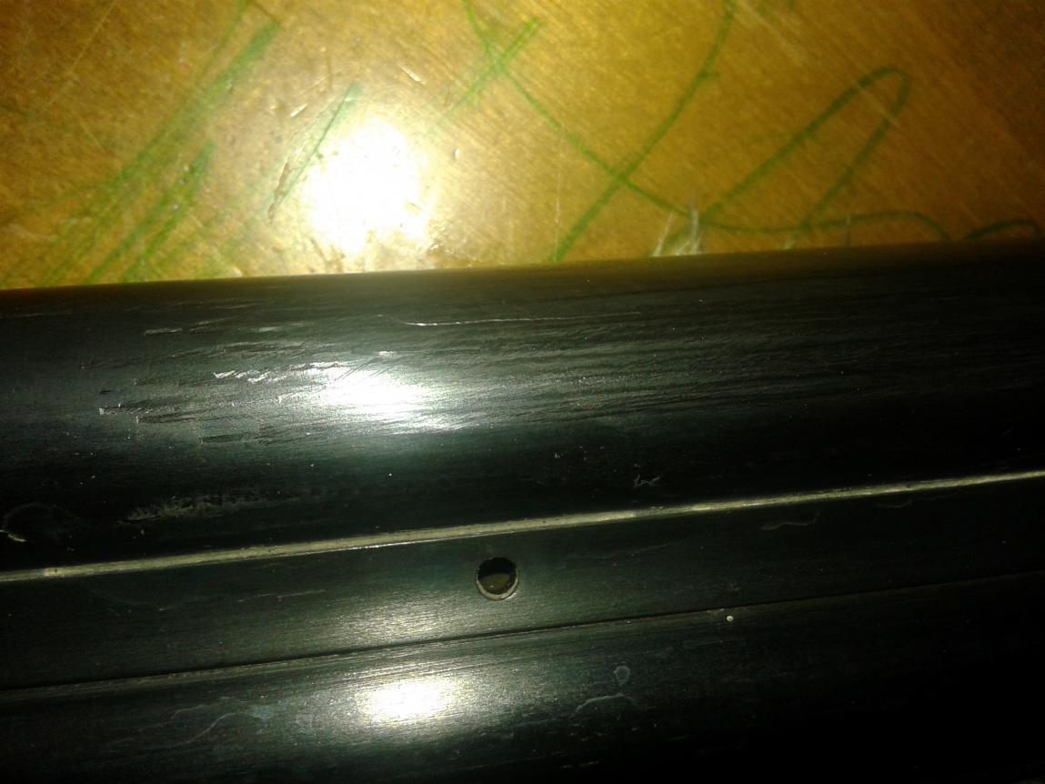 Потом пробовал царапать вилкой без усилия. Остались только полосочки бледные. До металла не процарапал. Так же обратной стороной этого ножа поцарапал ствол.