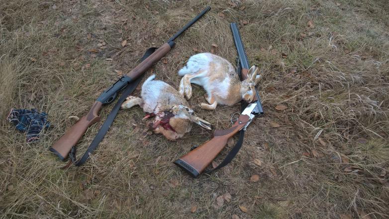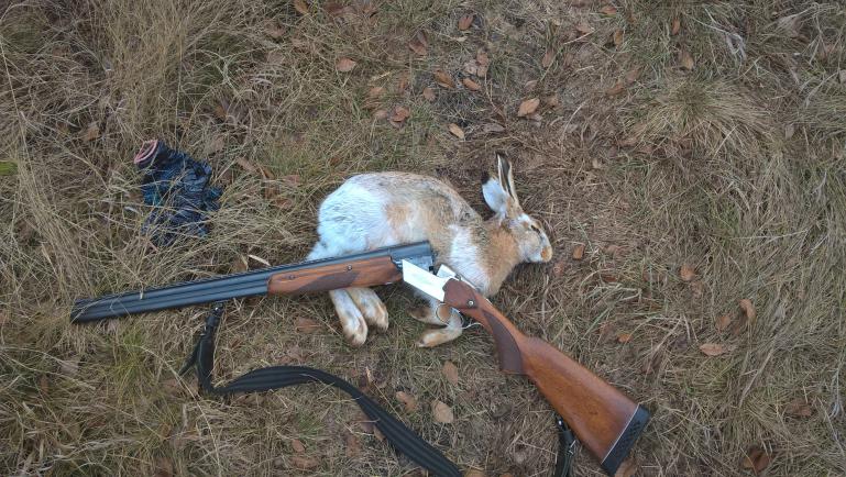 В воскресенье с утра с товарищем сменили место охоты. Нашли посадку, с одной стороны которой пашня, а с другой скошенный подсолнух, в итоге 3 подъема и 2 косых добыты. Для меня это первый добытый в сезоне 17\18 заяц, товарищ уже успел отличиться! Хотелось бы также отписаться и в теме "по перу", но увы!, видимо закрылся я еще на прошлой неделе, т.к в местах моей охоты на водоемах "встал" лед и утьва ушла.