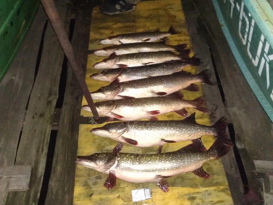 резльтат вчерашнего дня (субботний улов щуку на 4+кг и пяток судачков от кило и меньше схомячили в 6 рыл на острове в виде ухи, судака жаренного, и щуки тушёной в майонезе с луком )