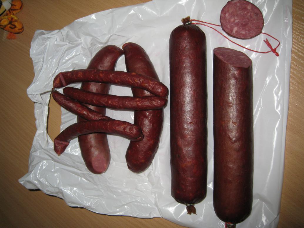 Рецепт мне неизвестен,но уже грамм 200 принял даже не заметил.Семья уже доела которые типа "охотничьи",говорят, пахнет как-то не очень,но съели всё.Колбаса чисто мужская,твёрдая и с характерным дичи запахом.Но под рюмочку...