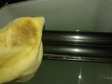 решил пойти дальше, сыпанул пемолюкса на ствол и потер. тряпка почернела, покрытие на месте.( хочу заметить что после воронения я просто протирал слегка тряпочкой, а каки после воронения зватает).