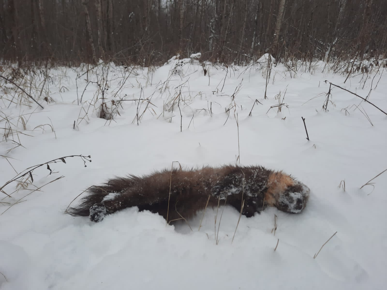 День сегодня классный, накатался на коньках на лесном озере, а потом проверил неподалеку маленький " путик"- снова успех)