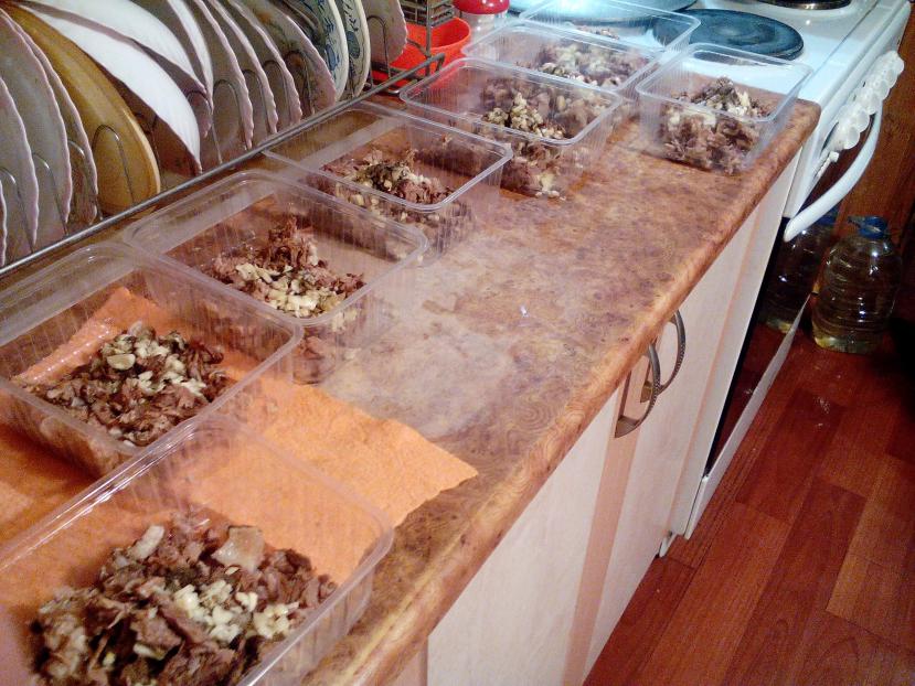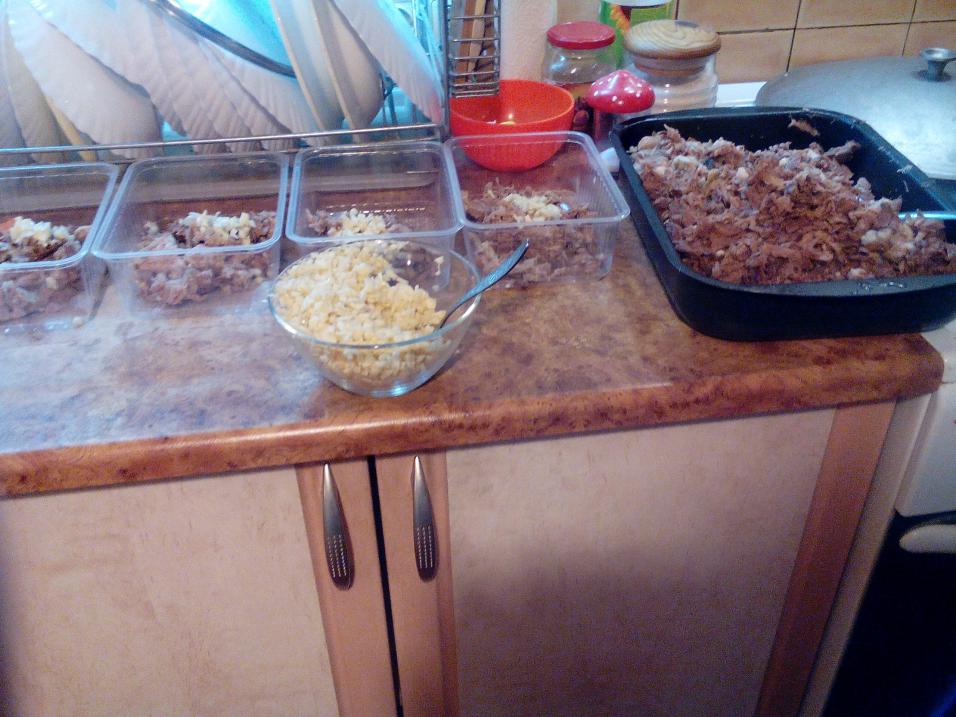 Продолжение. Чеснок режу, ни каких давилок не признаю. Бульон на балкон, жир поднимаеться на верх в виде белой корки, снимаю его шумовкой. И ни каких проблем. Ставлю бульон на комфорку, кидаю лук, морковь ну и вариться он с часик. Тем временем раскладываю по одноразовым судкам мясо, чайную ложку с горкой чеснока, перца черного молотого. Кипящим бульоном заливаю и на балкон. Морковь в холодец не кладу, выкидываю вместе с луком. Как то так. Оптимальные судки 750 гр, но в этот раз чет не было, пришлось брать по литру. 12 судков вышло. Казан 8 л, кастрюля 5 л. Ну как то так. Да, варю под крышкой. Процесс снятия жира и заливки бульоном не фотографировал. Употреблять с горчицей, у меня мама ее хорошо делает, магазинная рядом не валялась.