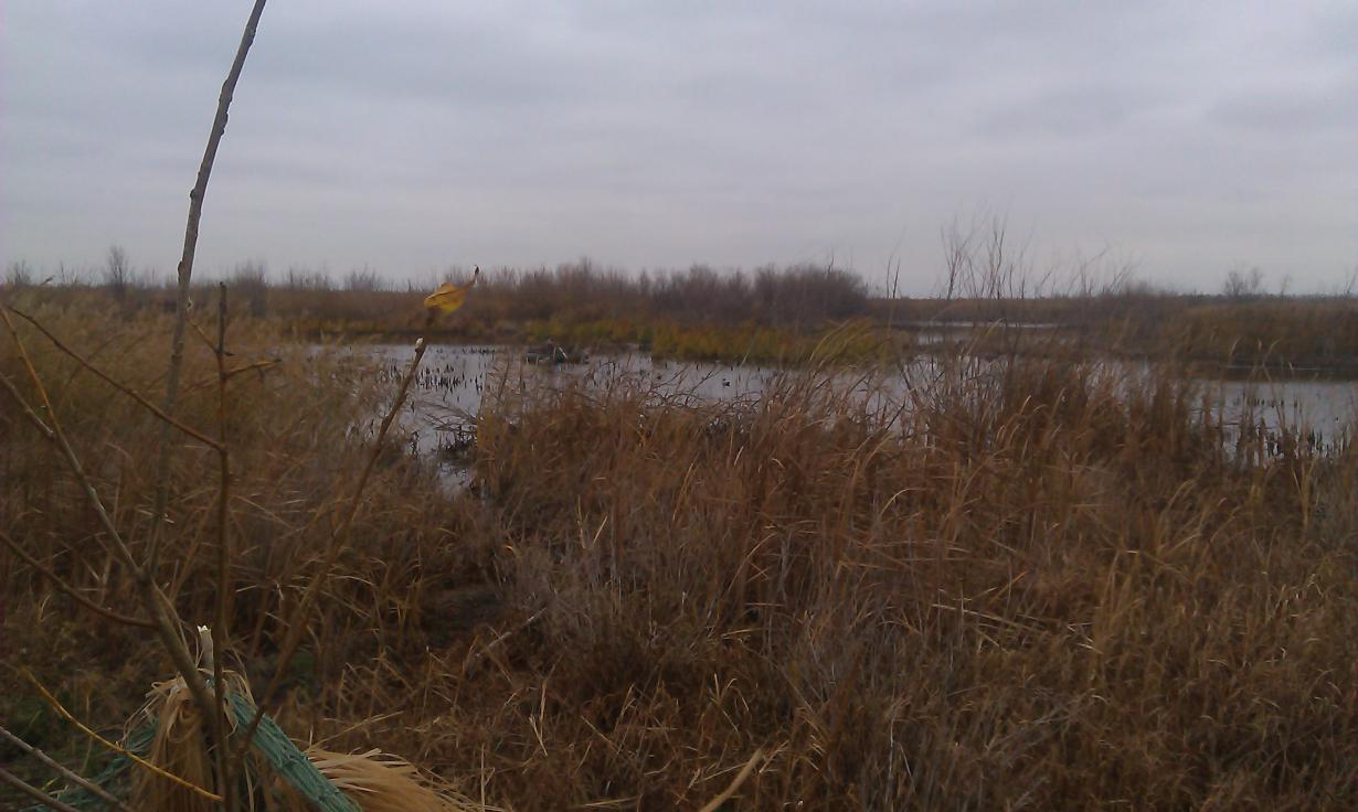 В субботу вечером высадили чучела (фото 1), замаскировал машину (фото 2), замаскировался сам (фото 3), но взять никого не удалось. Утка летает слабо. Был только один нормальный налёт на чучела, но промахнулся. Ближе к темноте пошел снег.