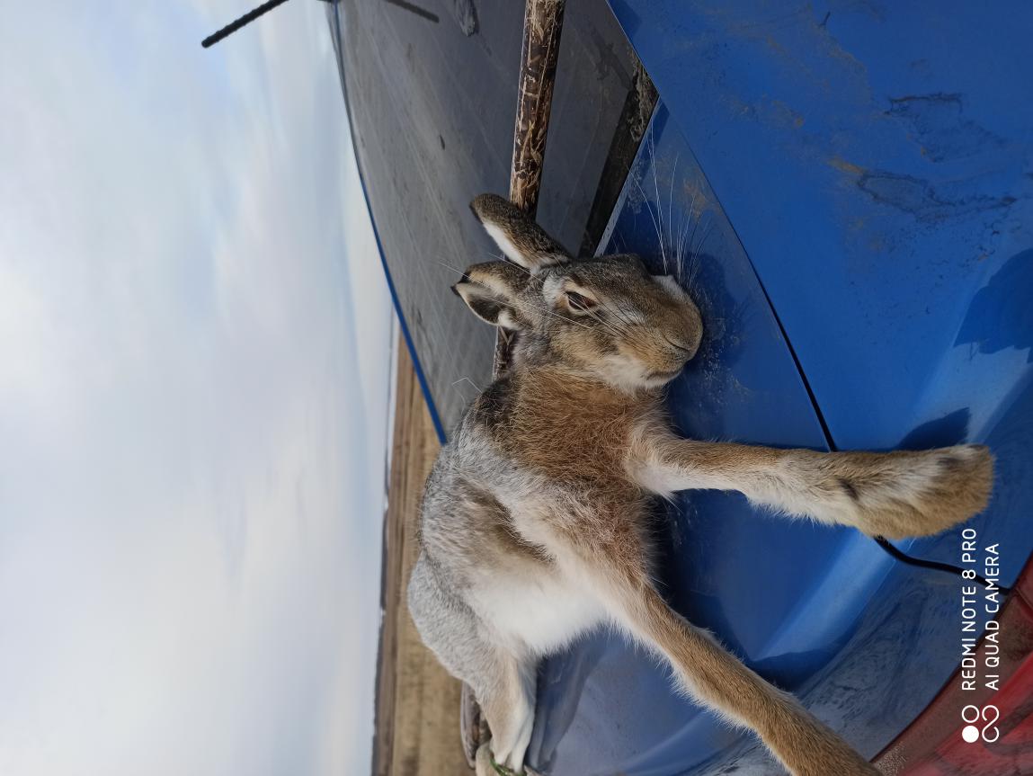 Делаю примерное упреждение и спускаю курок. Выстрел и задние лапки показались выше травы. Один подъем, один выстрел, один трофей.