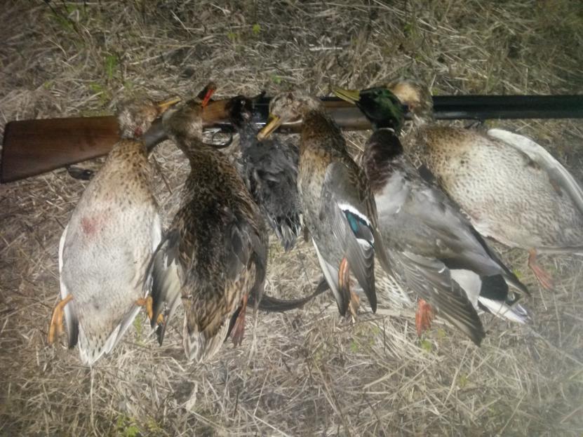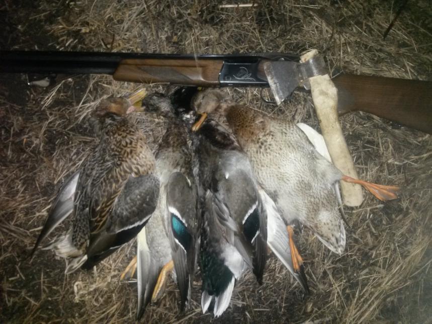 Всем привет. Сегодня товарищ позвал поохотиться на пролетку на в Рубежненское охотхозяйство , собрались поехали - дорога местами просто ж@па, мы хоть и на нивах ( а у меня вообще шоссейная резина) ехали местами боком ( на крыше- хоть картошку сажай)... приехали на место - хороший знак, с места утки поднялись)- пока поболтали...решил поманить- откуда то с неба сразу крякаш. ..бью, готов....и понеслась. ..мазал ( из-за близости уток- налетали, хоть сачком лови)...в итоге у меня четыре, товарищ только одну... ( отвык от ружья)...на обратной дороге вперся по самое небалуй , 30 минут е&&ли с топором ( он на кадре))) и ветками и о чудо , обошлось без трактора. ..вердикт - топор , лопата и ДЛИННЫЙ трос обязательно должны быть в машине ))) всем ни пуха ни пера )