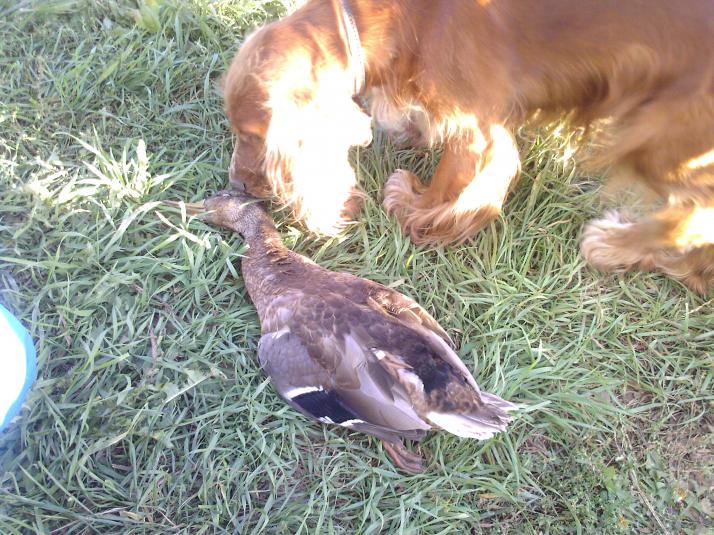 Спасибо Жень! Собакин даже лапы не замочил, утка как-то сама со страху наверное, на берег вылезла. Глаз порадовал, 70 метров, сумел попасть.