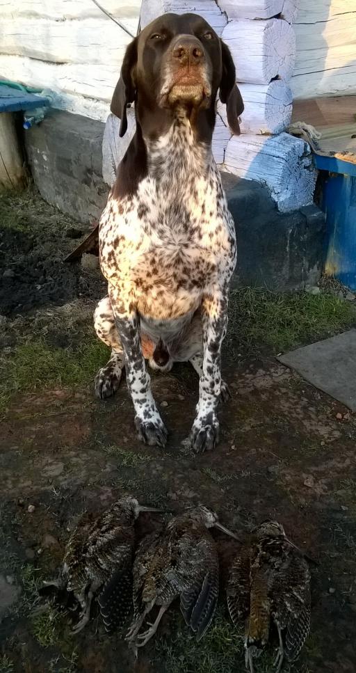 Вчера вечером на тяге пятерых увидели,трёх взяли,остальных пропустили.Кобель доволен-нашел всех сбитых вальдшнепов в кустах,принёс.