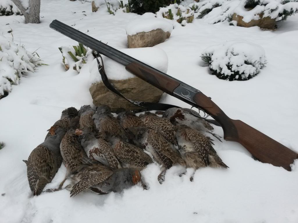 Всем охотникам привет ) - я тоже сегодня закрылся- закрытие по перу выдалось необычным и очень интересным . Собрался утром, взял ружье и пошел к ближайшему болоту- там лед ( 3 см)...стал обходить - с края из куровника стая куропаток фыррр, стреляю две падают...и понеслась ( а так как я все семьи кур в нашем околотке знаю в морды, то переключился на них)- ....гонял я их по буеракам до двух часов ( домой пришлось зайти ,переоделся - пропотел, как ГТО сдавал))телефон замерз, так что фоткал я трофеи на даче, в саду камней )))....итог - минус патронташ феттера, плюс 13 куропаток и отличное настроение и воспоминания на весь год! Всем ни пуха ни пера.