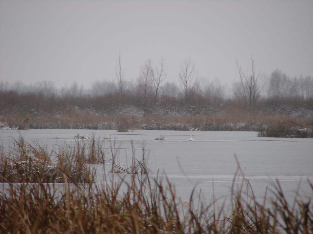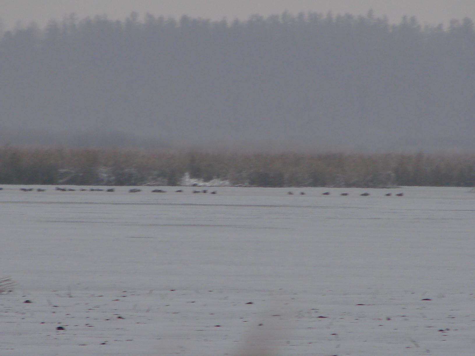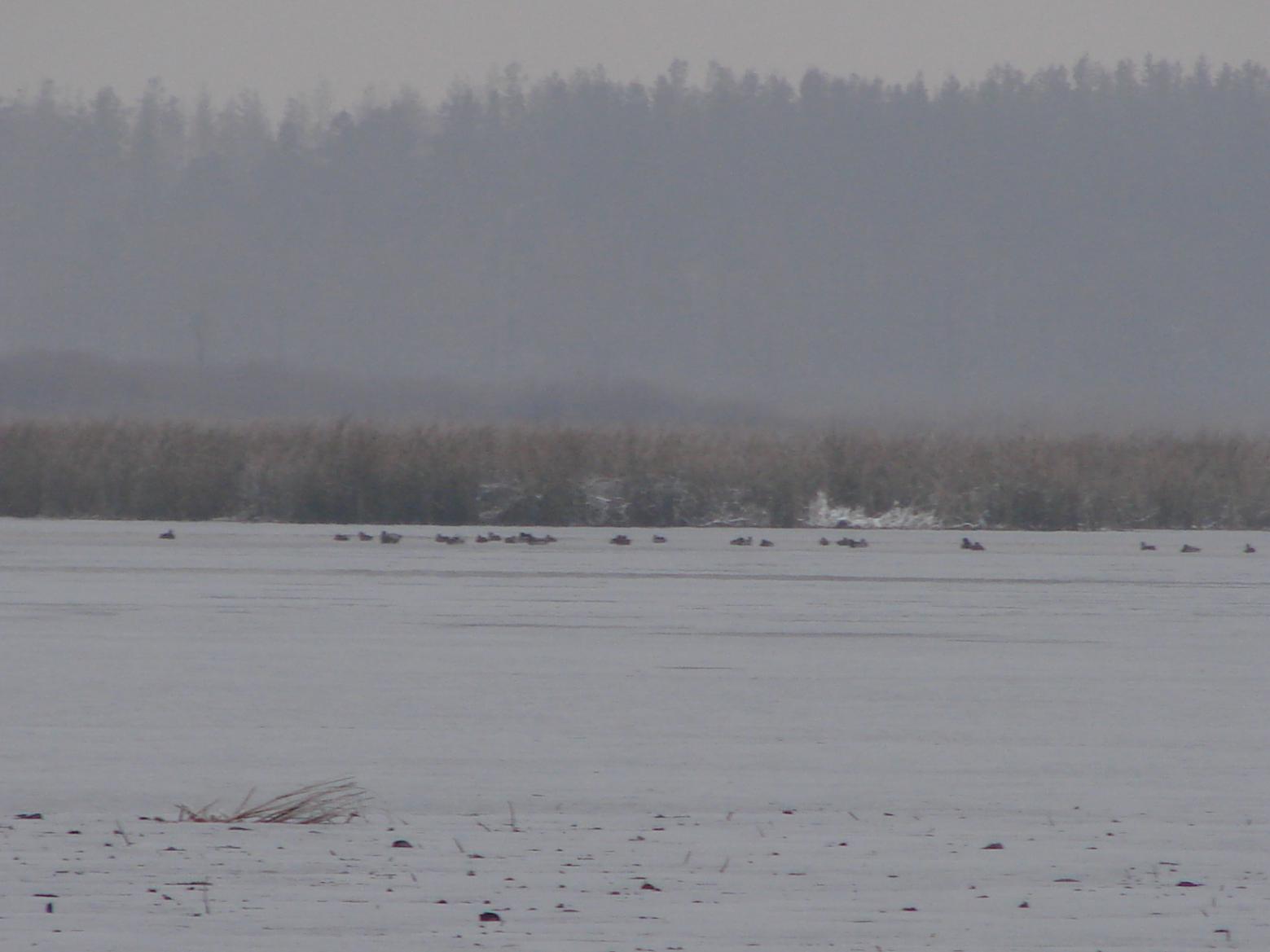Выставил чучела (20шт) и начал манить. По светлому были налеты в основном одиночек. И те, почуяв подвох, делали круг и ноги, точнее крылья. Одного красноголового оставил себе, чтоб было с кем поговорить . Весь день было скучно, только Колотун-Акя в гости приходил, развлекал. Летело много лебедей с малыми, одна семья с пятью темными сеголетками, сделав пару кругов надо мной, села в маленькую полынью в камышах за моей спиной в метрах 150-ти. На фото будут. Там и отдыхали до темноты, даже выстрелы их мало волновали.