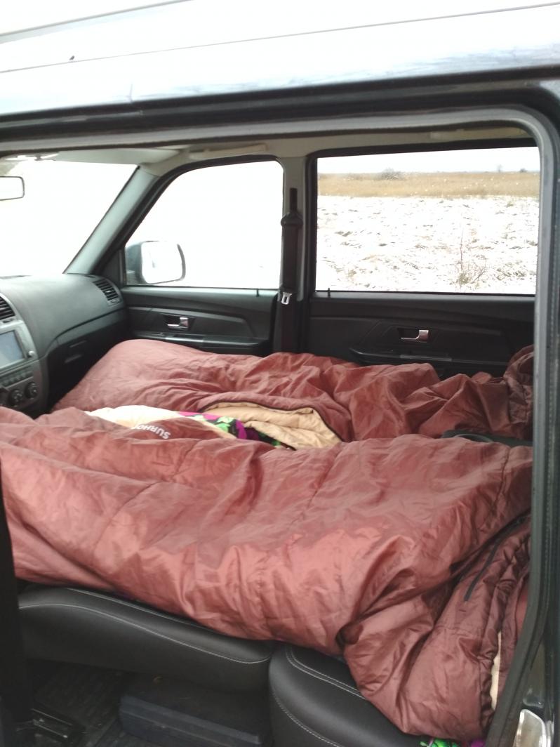 Так в патриоте не удобно ночевать, в багажнике можно сделать двухспальную кровать и спать с вытянутыми ногами. Всю весну так спим с отцом и на утро как огурцы, выспавшиеся и отдохнувшие как на домашней кровати. Переделывайте и будет вам счастье.