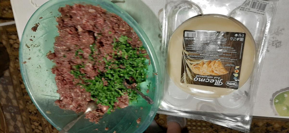 Остался фарш. Добавил зелени. И просто чебуреки.