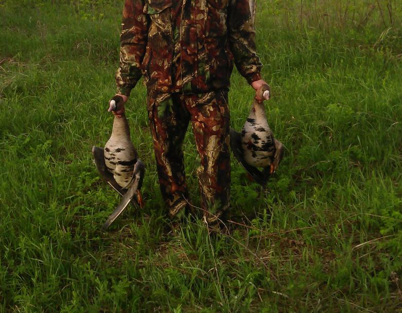 Я легкомысленно отнесся к закрытию не взял с собой ни чего из гусиных причиндалов и оборудования и после этого решил сделать себе дежурный чемоданчик для охоты на гуся,приехал в белых кроосовках,спортивном костюме и двухстволкой Иж 27ЕММ 1с,которую использую только как запасной ствол и взял с собой патронов 20 штук магнум. Легки в озимку,я представляю как я выгледел в глазах гусей в белых кроссовках,все что на меня налетело я благополучно смазал,потому что уже три года охочусь только с браунингом от ижа уже отвык. Сергей 063 уронил одно белолобого гуся на глухо,второй гусь падал камнем,но приземлившись сумел быстро свалить и мы его не нашли. Иван Ерошкин то же уронил одного белолобика,которого нашли , второй белолобик спланировал на конец поля но его тоже не нашли. Фотки не выставляю трофеи не мои. отличившиеся сами их выставят и что нибудь добавят Вот такое получилось закрытие для меня в виде легкой прогулки за гусем))) |