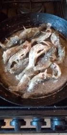 Рецепт до банального прост, но требует ловкости пальцев. Рыбок моем и потрошим. Нужно аккуратно вскрыть каждую и удалить внутренности. Икру складываем отдельно. Потом обваливаем в муке с солью и отправляем на разогретую сковороду. Обжариваем с одной стороны, затем с другой. Снимаем очень аккуратно - рыбки становятся хрупкими. Вкуснейшее нежнейшее белое мясо! Косточки и пёрышки превращаются в хрустящие чипсы. Голову тоже можно есть. Если делать с корочкой, то есть можно целиком. Рекомендую всем!