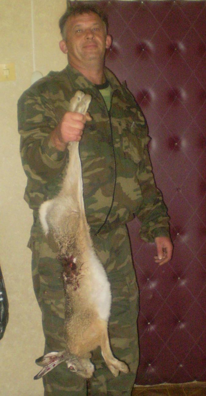 А я сегодня поехал за "попутной дичью", туда, где путевку у меня отобрали, еду, навтречу мне, бежит не понятно кто изначально. Подъехал поближе, заяц, громила-русачище! На всидку килограмм на 6-7, не меньше. Вижу напуганный какой-то, летит прямо на машину, я остановился уже, хулиган скорее из чехла вытаскиваю. Как всегда в такой момент, чего-нить, да мешает. Ну вытащил, из машины вывалился, типа ща я тебя Зай, видно меня увидел, метрах в 10 от машины прыг, метра на 3 и в посадку. Ну фигли, вродь не за ним ехал? Думаю фиг с тобой, оставайся на развод. Поехал дальше. Подъезжаю, стоит машина. Поговорил с мужиком, это оказывается зай от его гончака убегал. Поржали с ним. 3-х штук там гончаки ему подняли, 1 взял. Того, что от меня убежал, судьба не известна. Во мля, сколько ездили, не думали, что там зайцев полно.