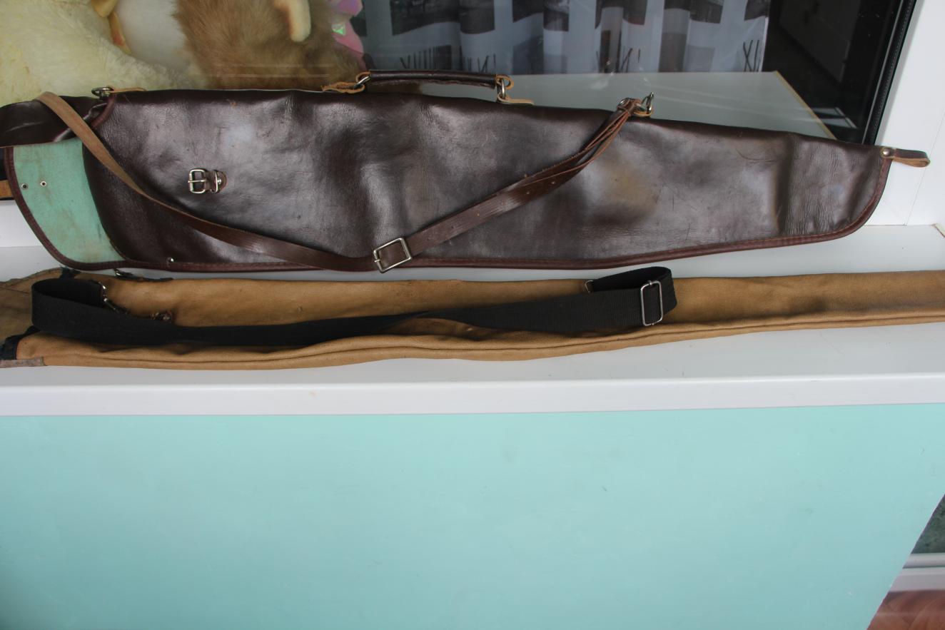 1. Чехол для ружья коричневый кожаный (отрез кожи виден на фото) двухсекционный - 1700р.